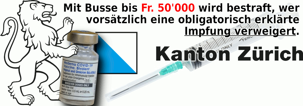 - Mit Busse bis Fr. 50’000 wird bestraft, wer vorsätzlich eine gestützt auf § 54 Abs. 2 obligatorisch erklärte Impfung verweigert [Art. 61 Abs. 1 lit. m GesG].